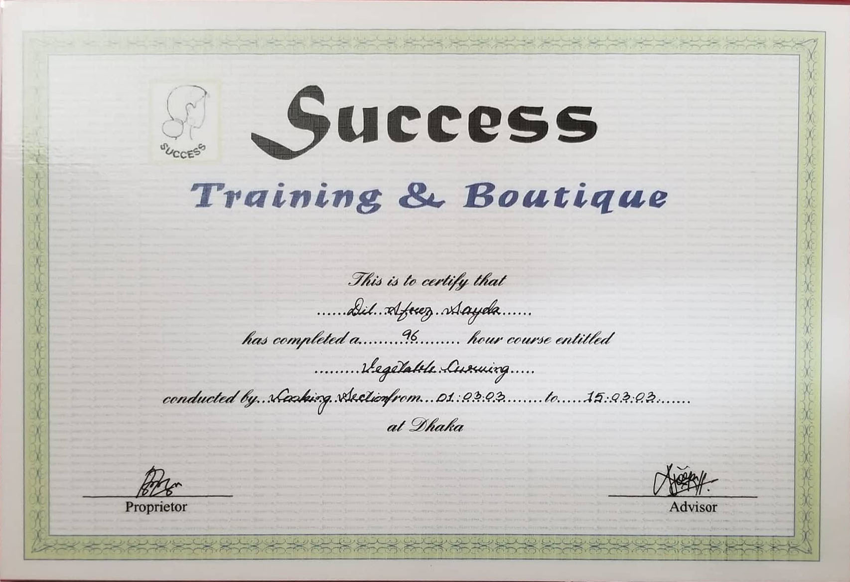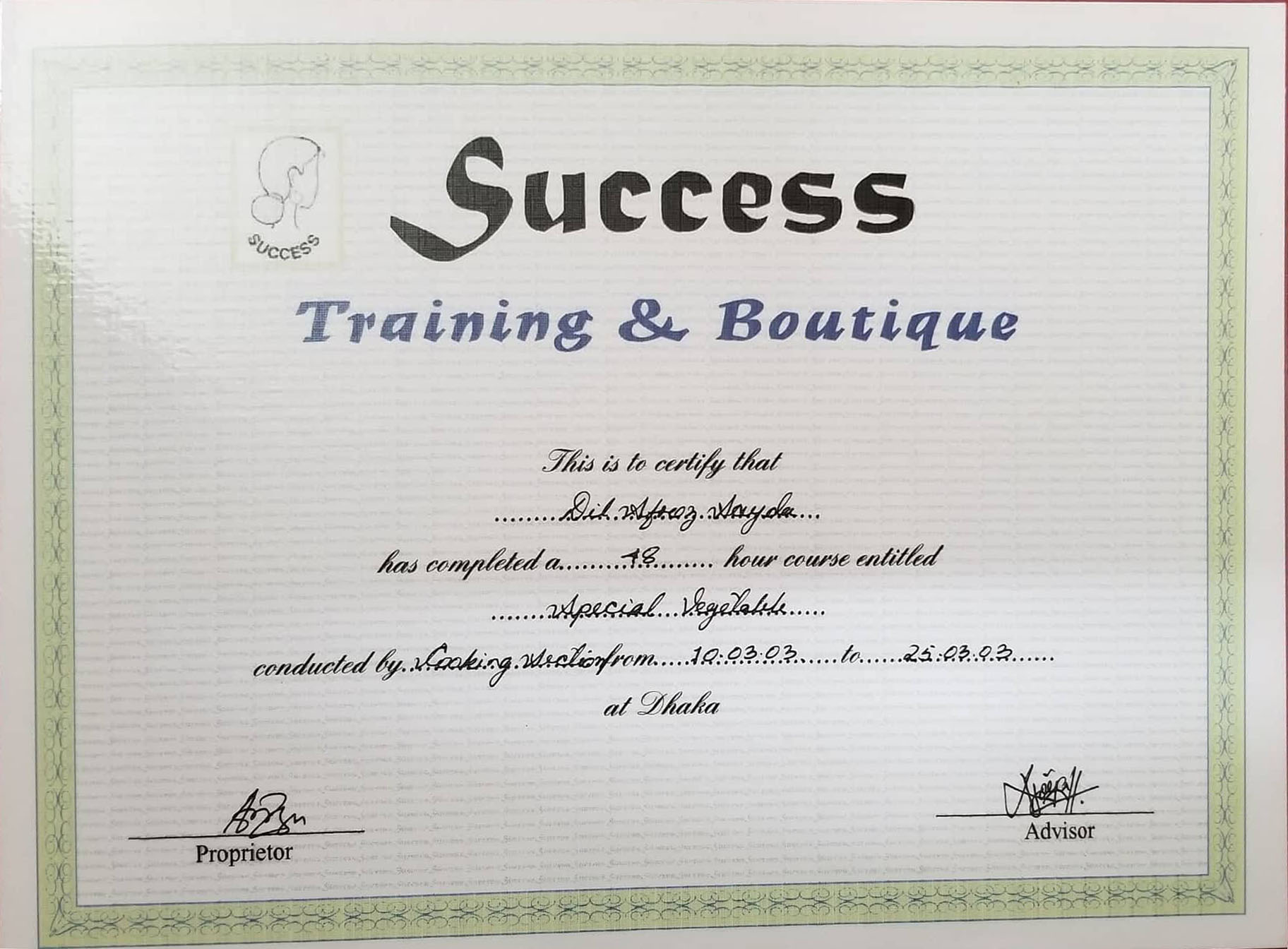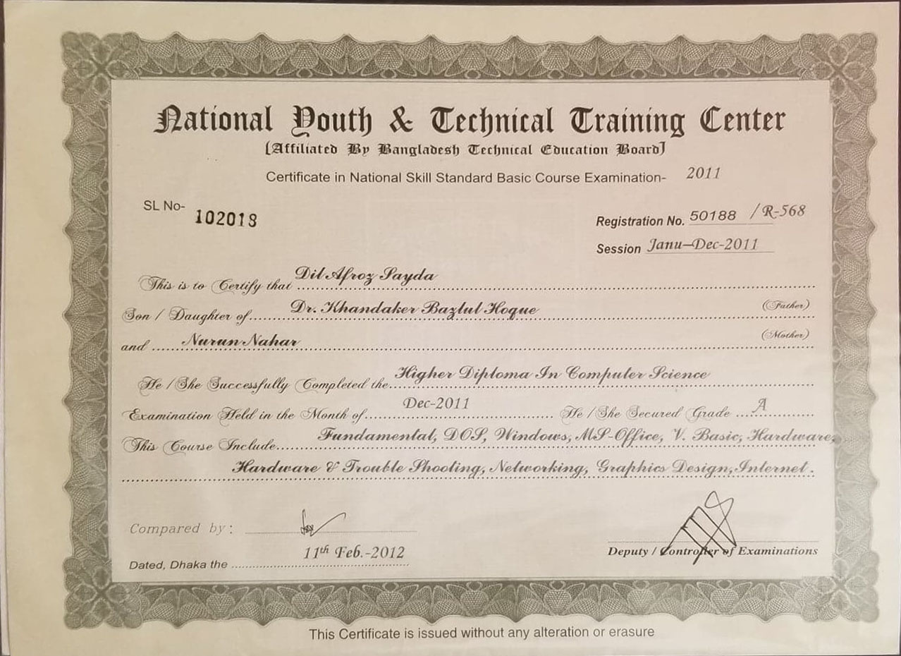 National Skill Certificate course Cooking (BTEB)