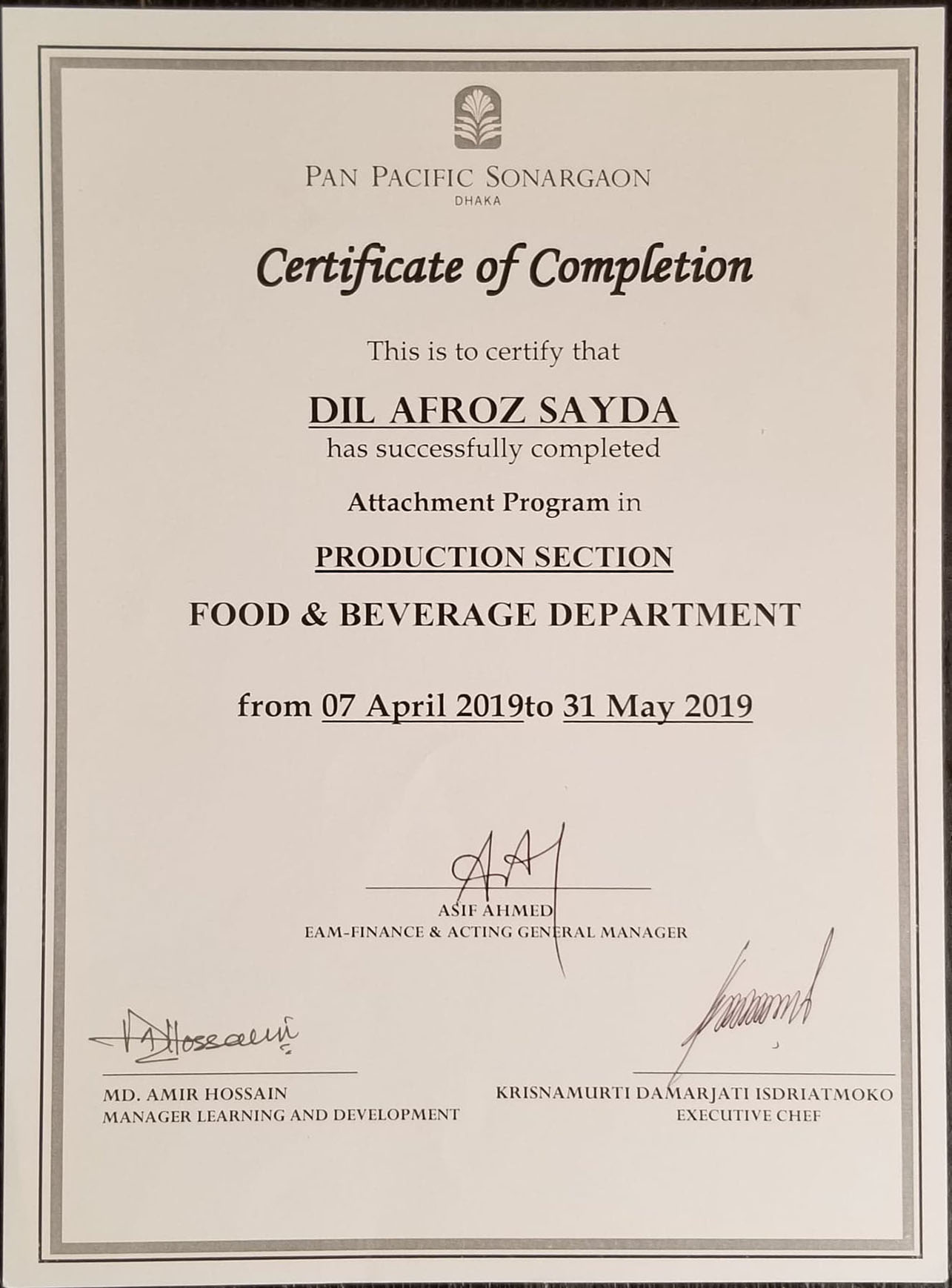 Interney, Sonargaon hotel (NHTTI)