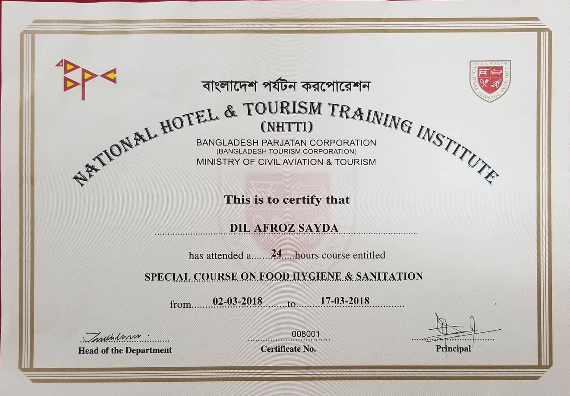 Food Hygine & Sanitation (NHTTI)