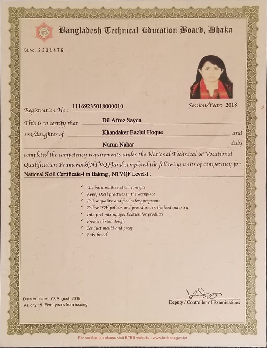 National Skill Certificate Course Baking (BTEB)