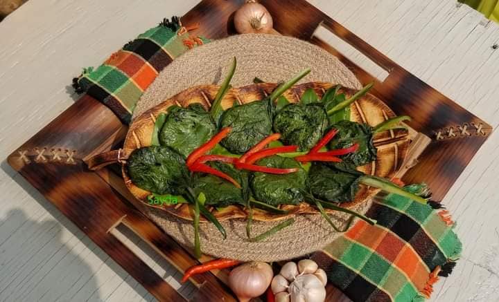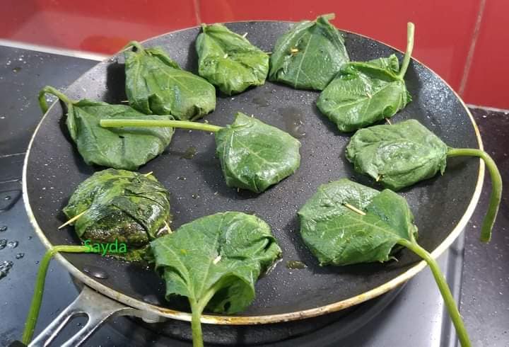 কাঁকরোল পাতা বা কুমড়া পাতা ধুয়ে কাপড় দিয়ে ভাল করে মুছে তার ভিতর এই ভর্তা দিয়ে মুড়িয়ে সেকা তেলে ভাজতে হবে।